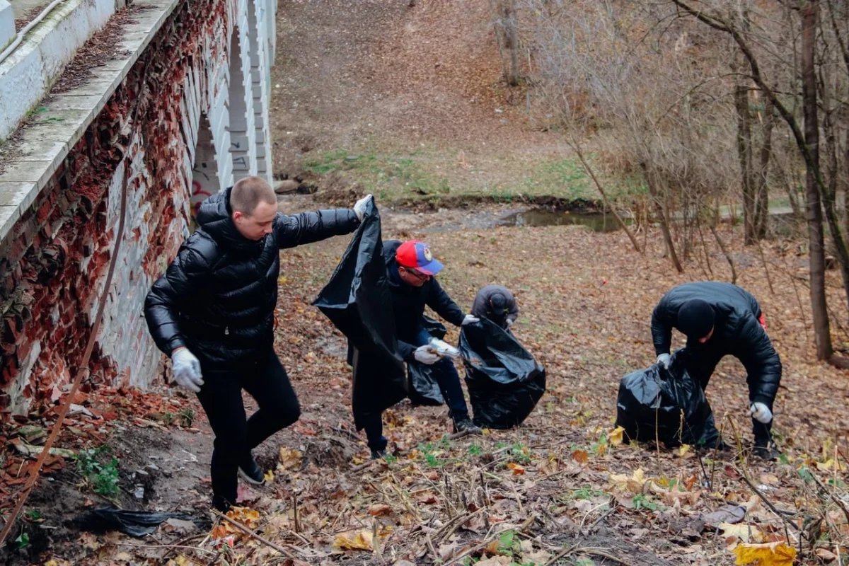 Более 30 сотрудников городской управы прибиралось в Березуйском овраге у Каменного моста.