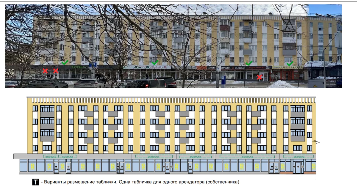 Вывески должны унифицировать на девяти домах: площадь Победы, 1, 2, 7, 10, 10а, 11/2, 15, а также Жукова, 1 и 2.