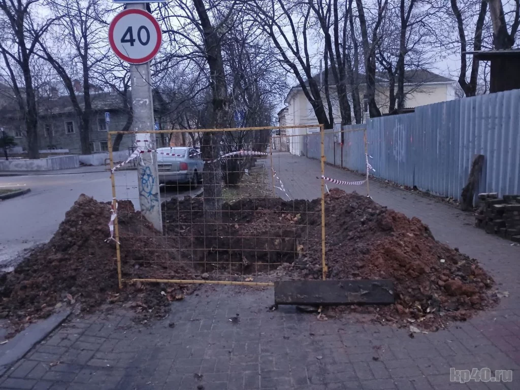 В Калуге раскопали тротуар на улице Воскресенской