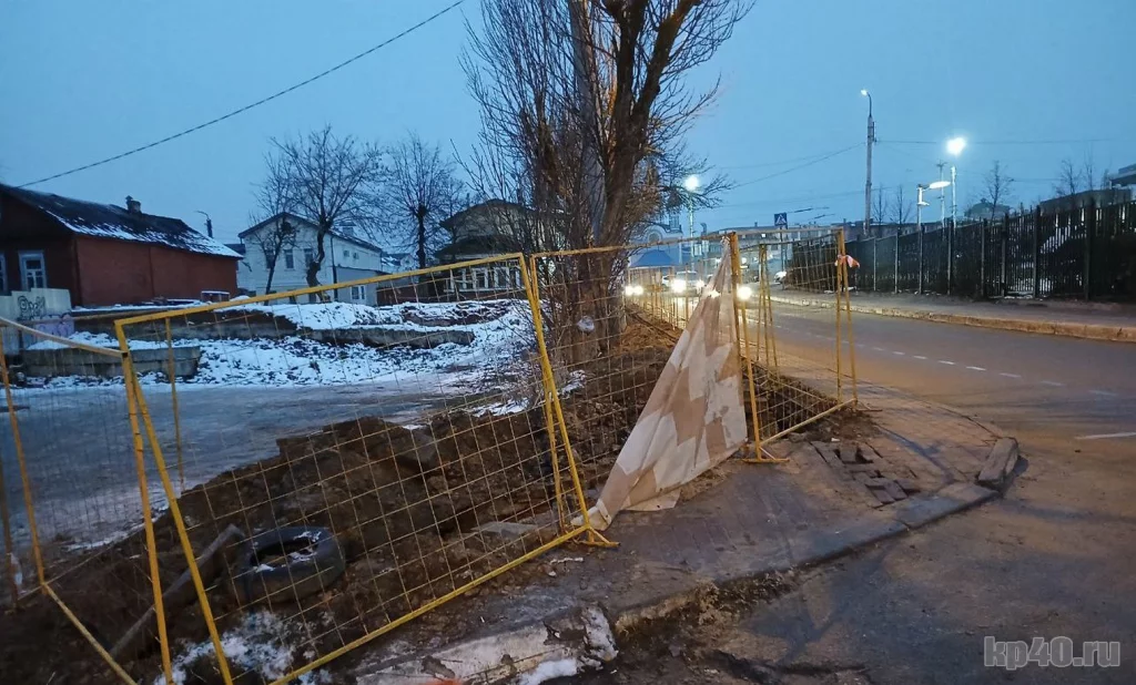 В Калуге раскопали тротуары на улицах Достоевского и Рылеева