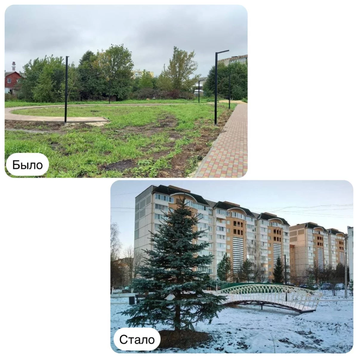 - Здесь построили широкую тротуарную сеть, установили освещение, лавочки и красивый мост с металлическими перилами, а еще посадили голубую пушистую ель, - прокомментировал Калиничев.