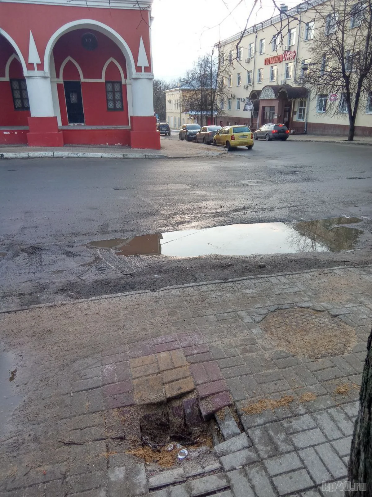 Провал образовался в районе канализационного колодца напротив Гостиных рядов.