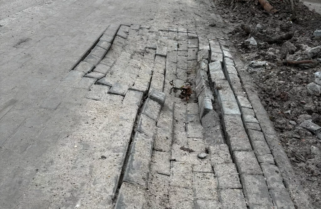 - Ранее на этом участке электрики прокладывали кабель. В течение следующей недели они устранят провалы плитки.
