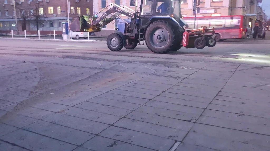 Наш читатель прислал видео уборки площади перед ТЦ, на которой работал трактор с щеткой, в чат-бот обратной связи нашего Телеграм-канала.