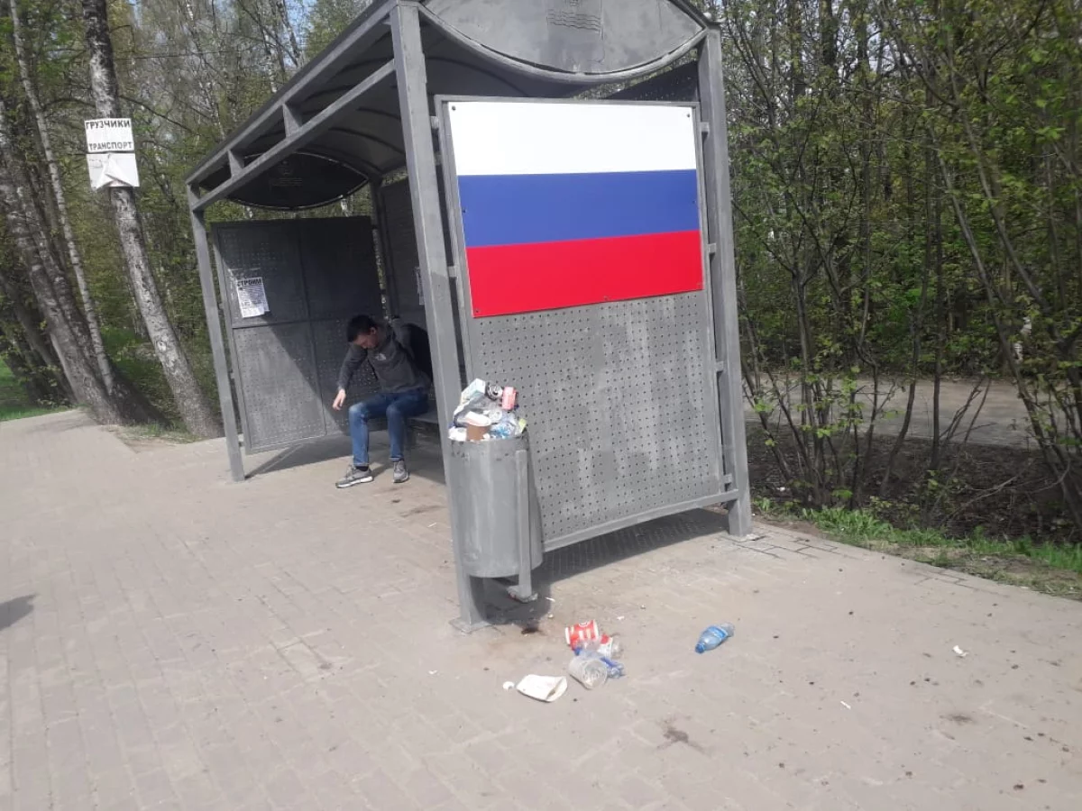 Триколоры появились на стенках остановочных павильонов.