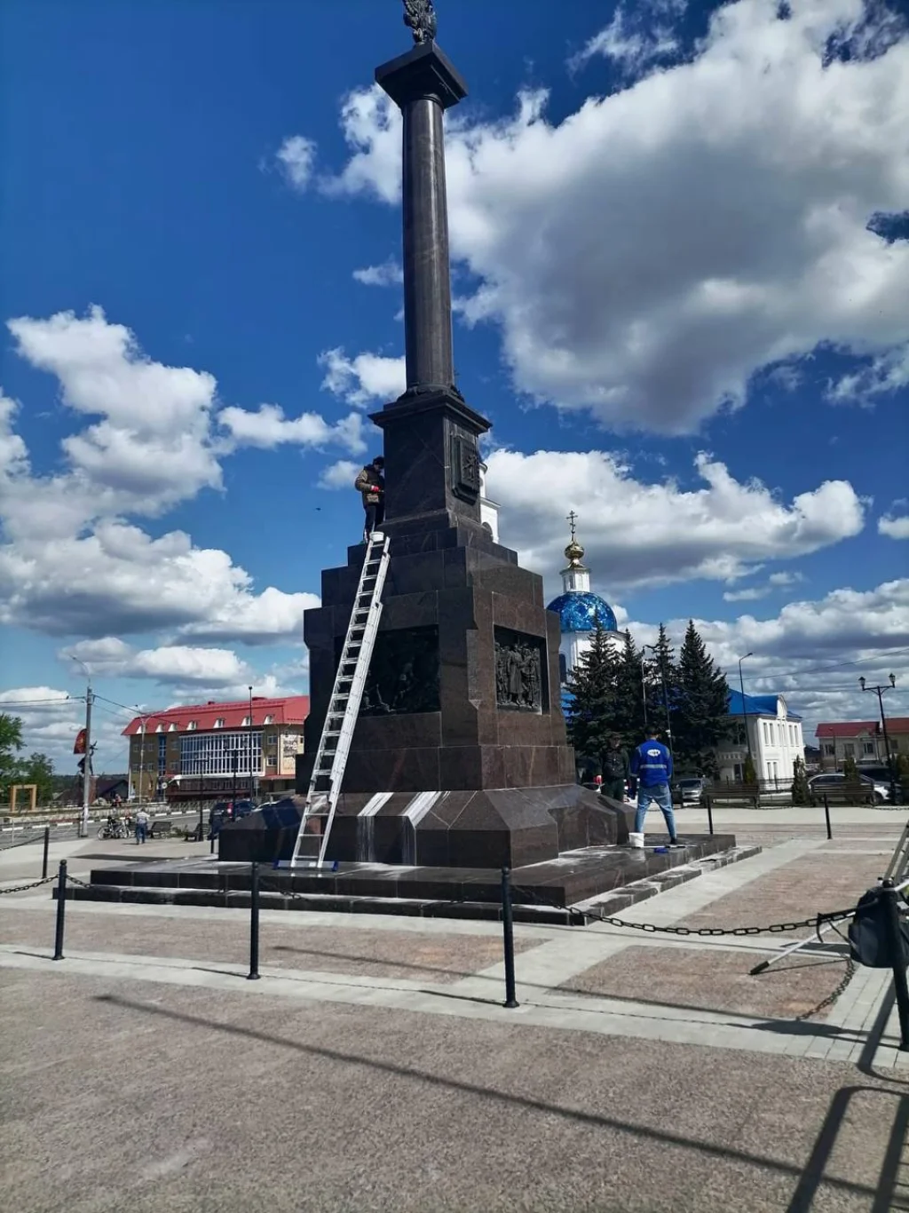- Особое внимание уделяется памятникам и мемориалам, являющимся символами героизма и мужества советского народа в годы Великой Отечественной войны, - рассказал глава администрации Малоярославца Михаил Крылов. - Одним из таких значимых объектов является стела города воинской славы, возвышающаяся на центральной площади города. Подрядная организация приступила к ее тщательной очистке. Рабочие аккуратно удаляют пыль, грязь и следы атмосферных осадков, накопившиеся за год.
