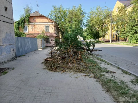 Напомним, дерево упало на выходных в районе перекрестка улиц Плеханова и Георгиевской.