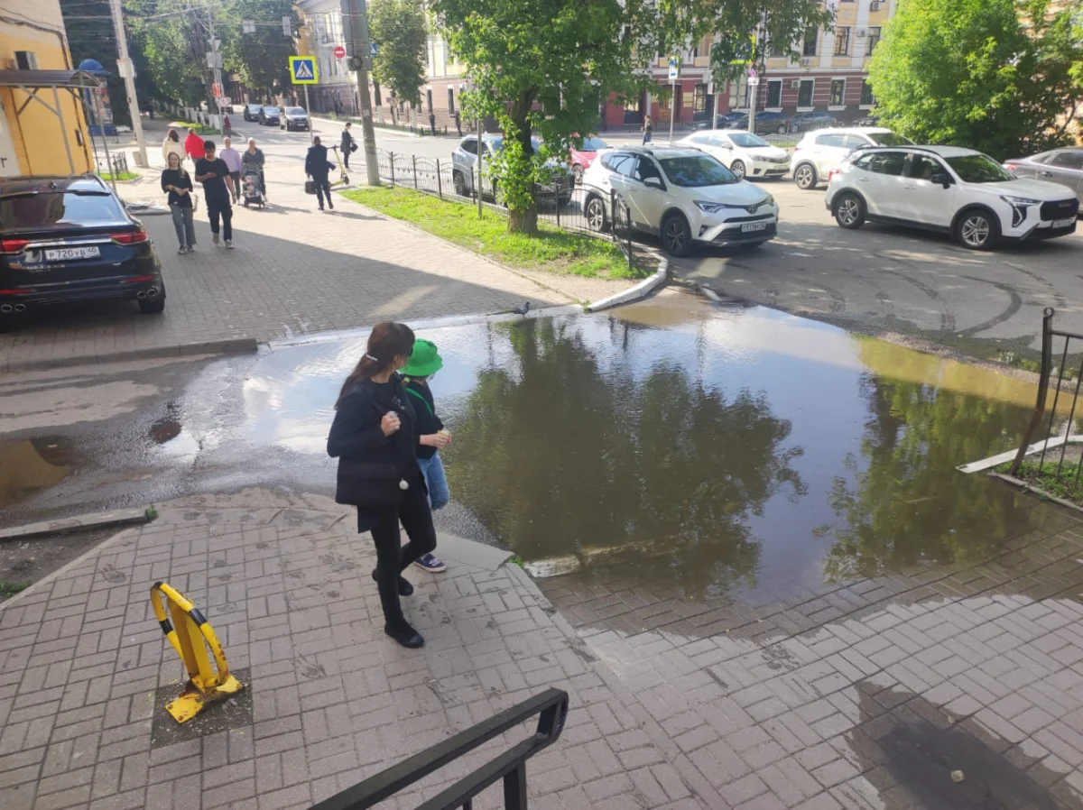 В Калуге лужа еще долго будет появляться на улице Суворова