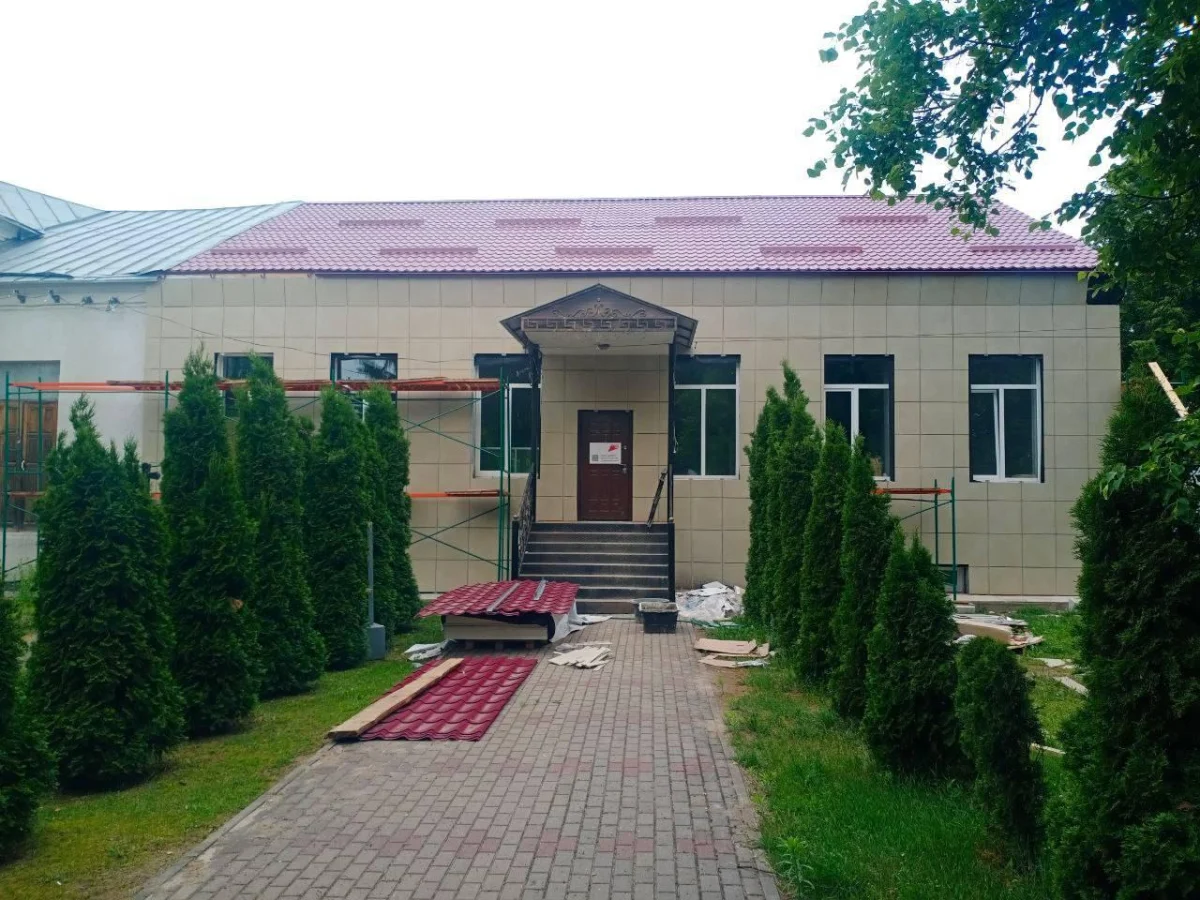 Подрядчики завершили первый этап работ. Они укрепили фасадные стены, заменили окна, отремонтировали крышу, обустроили отмостку и провели внутреннюю отделку: установили гипсокартон и возвели дополнительные перегородки. Также выполнена часть электромонтажных работ.