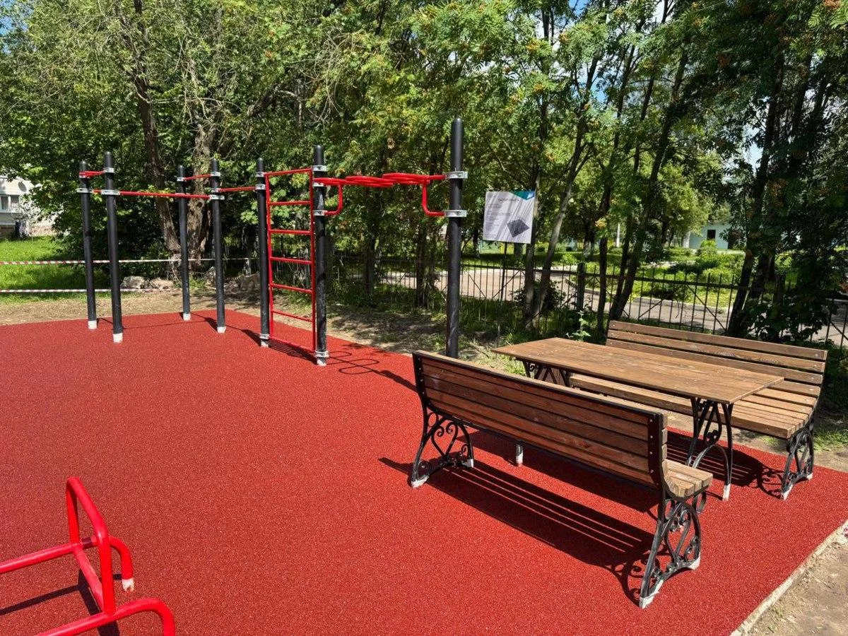 Площадку для тренировок и активного отдыха оборудовали возле дома №12, недалеко от памп-трека. Это место было определено для благоустройства по итогам всероссийского онлайн-голосования в рамках программы «Формирование комфортной городской среды» в 2024 году.