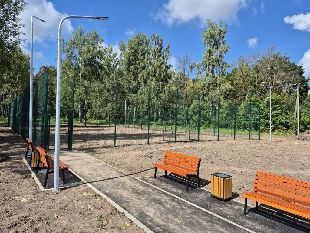 Специалисты заканчивают формировать газон на спортивной площадке и в скором времени любители спорта получат доступ к новому объекту.