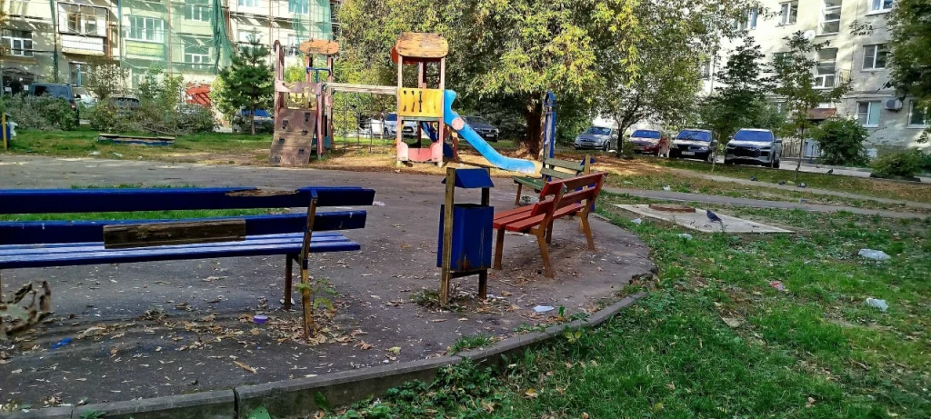 Один из жителей дома №40 на улице Ленина в Калуге столкнулся с проблемами в своем дворе. По его словам, территория постоянно находится в запущенном состоянии: повсюду мусор, а ремонт лавочек и детской площадки был выполнен спустя рукава.