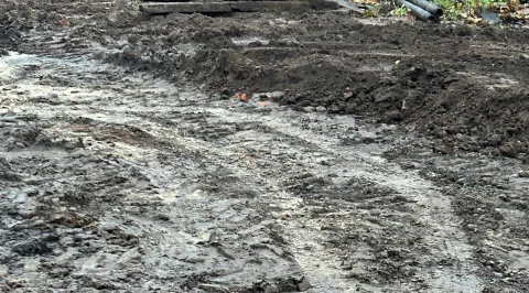— Мало того, что у нас раньше тротуара не было, сейчас вообще никакого покрытия не стало. Это просто варвары какие-то так раскопать и всё оставить после себя. Из подъезда сразу в грязь выходим и весь двор такой! - описала проблему горожанка.