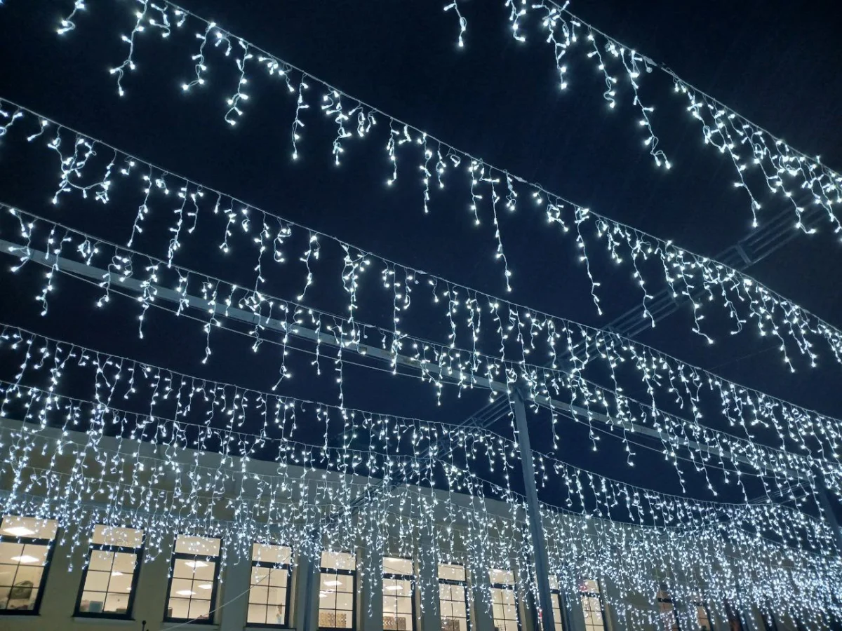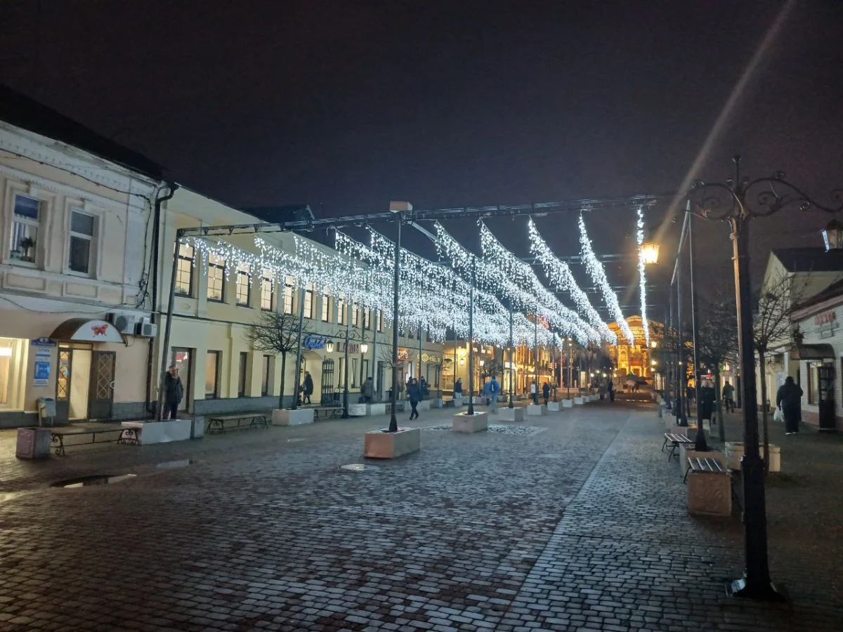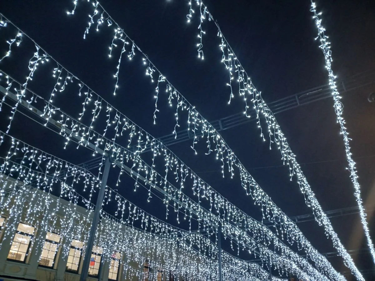 Над пешеходной частью вновь развесили светодиодные лампочки.
