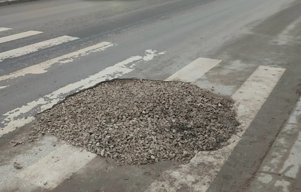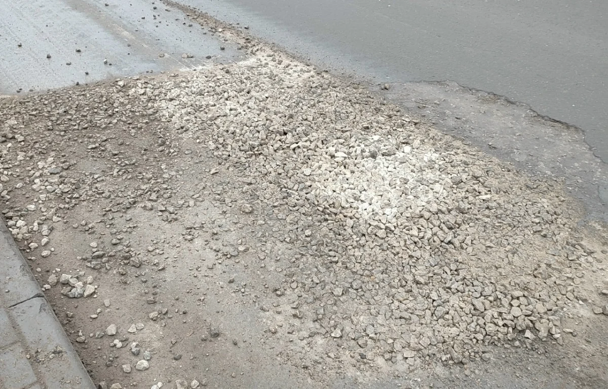 По его словам, крупный щебень на проезжей части лежит почти неделю.