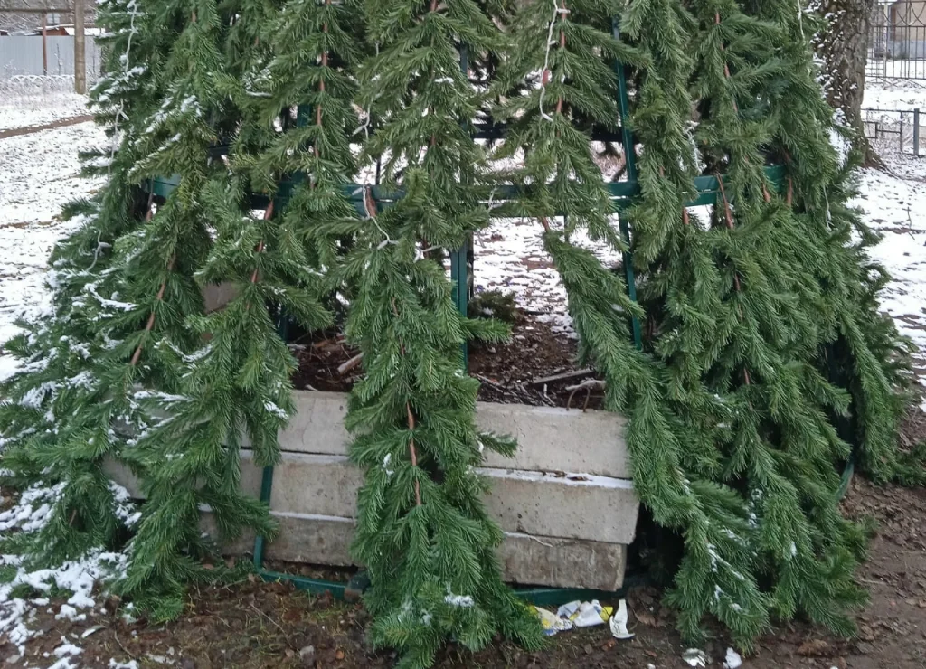 В калужском посёлке обнаружили бетонные блоки под ёлкой