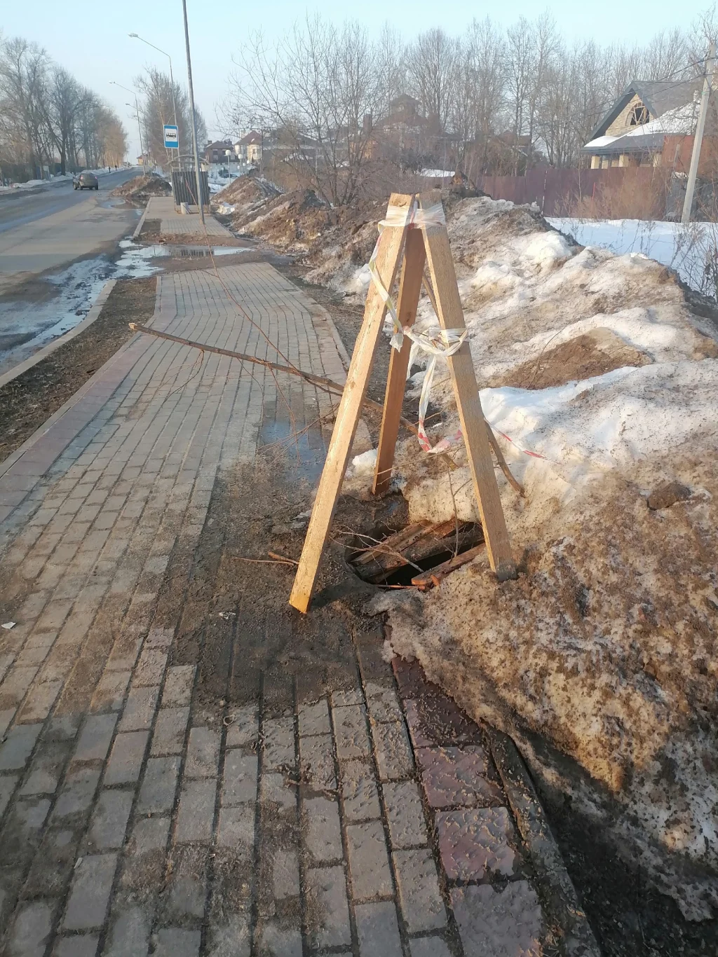 В Калуге три месяца не закрывают колодец на тротуаре