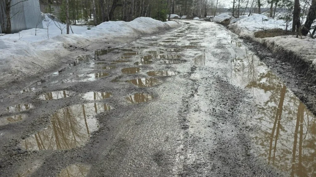 Местная жительница рассказала, что весь щебень и асфальтную крошку, которые жители улицы Рождественские Пруды приобретали за свой счёт, грейдером её сдирают и выбрасывают в лес. Она добавила, что жители уже не первый год просят нормально отсыпать дорогу.