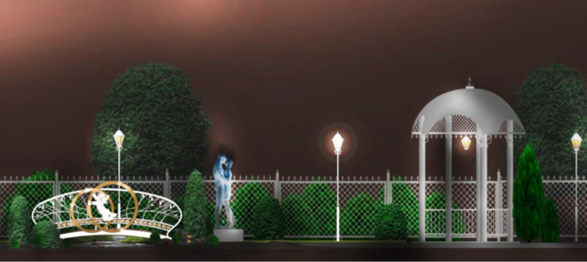 Эскизы будущего сквера молодоженов рассмотрели на совещании в городской управе Калуги в среду, 22 мая. Там были представлены изображения кованой решетки, фонарей и ротонды, которые возведут в сквере рядом со зданием ЗАГСа.