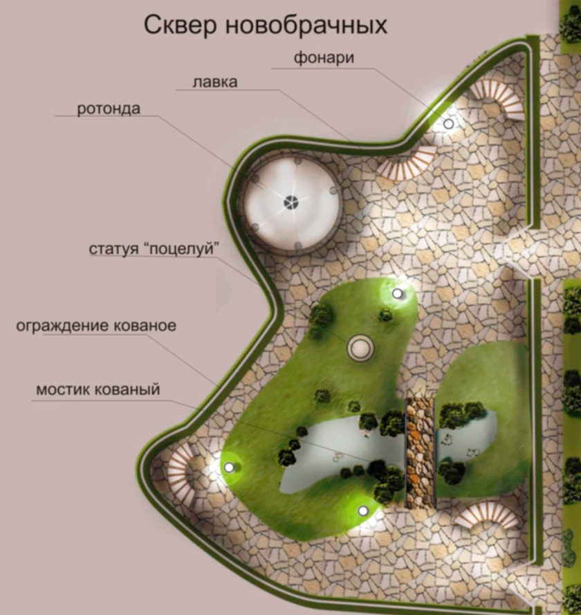 Его обнесут кованым забором и установят там ротонду, статую «Поцелуи» и лавочки.