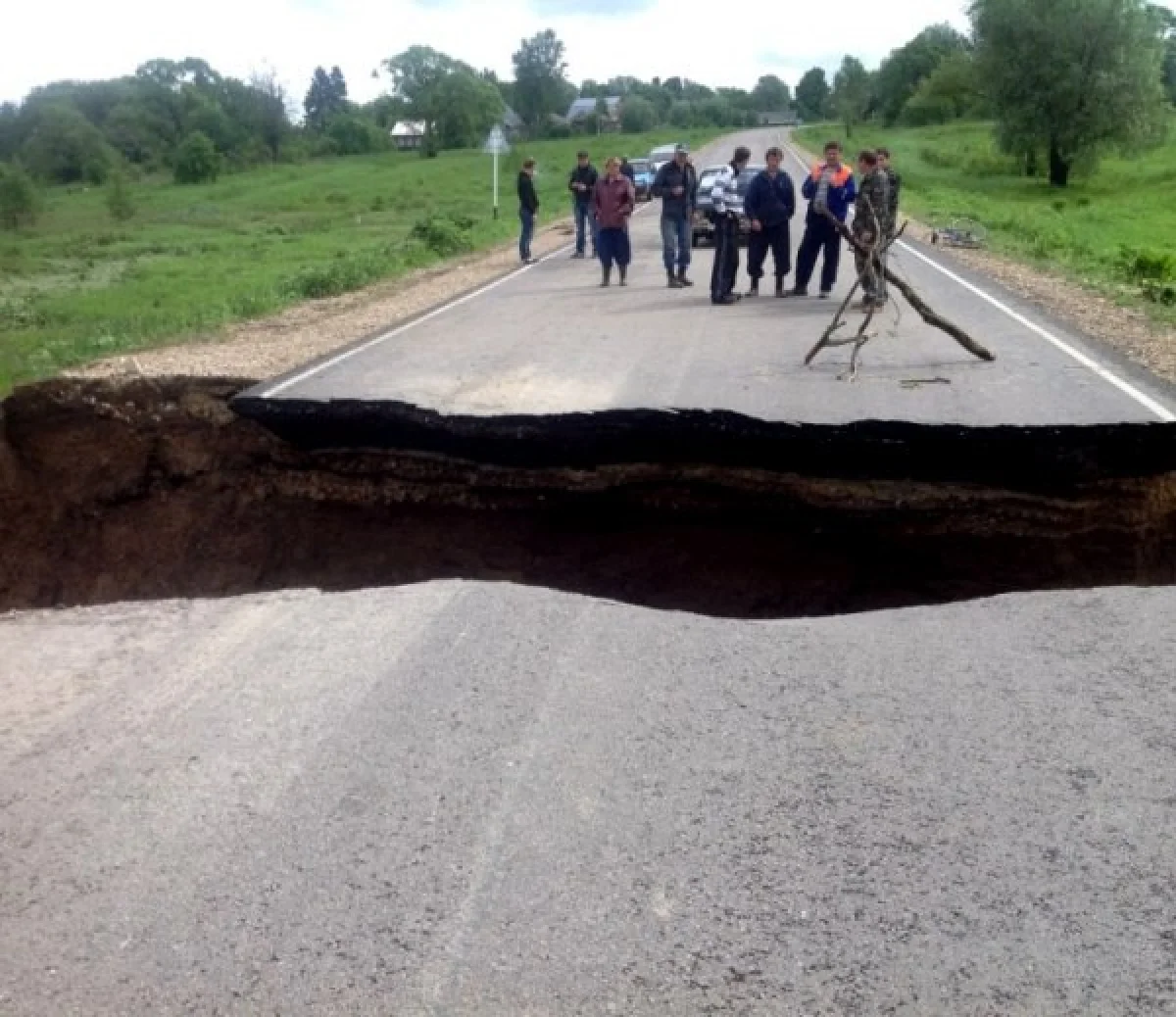 Как мы уже писали, дорога Калуга - Ферзиково - Таруса обвалилась после сильного ливня во вторник, 28 мая. Тогда ямы глубиной в несколько метров возникли сразу в двух местах.