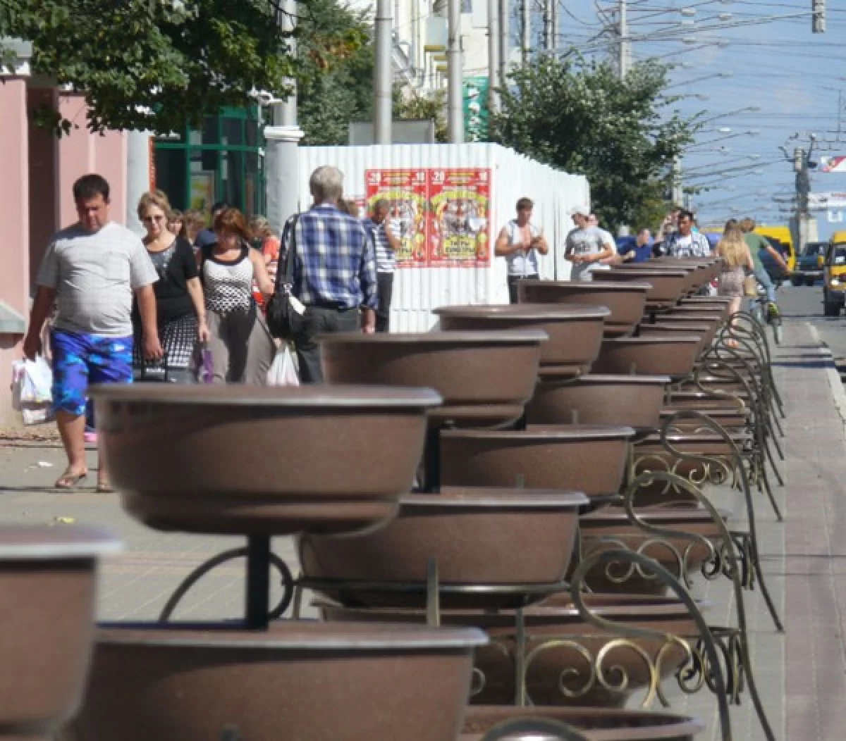 В августе прошлого года в центре Калуги, вдоль улицы Кирова, были установлены 15 крупных вазонов, которые с легкой руки горожан тут же окрестили «летающими тарелками» и «пауками». В ноябре кашпо, которые официально называются «Каскадами», убрали до весны. Как поясняли нам в горуправе, это было сделано для того, чтобы они не мешали уборке улиц от снега, а также потому, что кашпо выполнены из пластика и на морозе могли потрескаться.