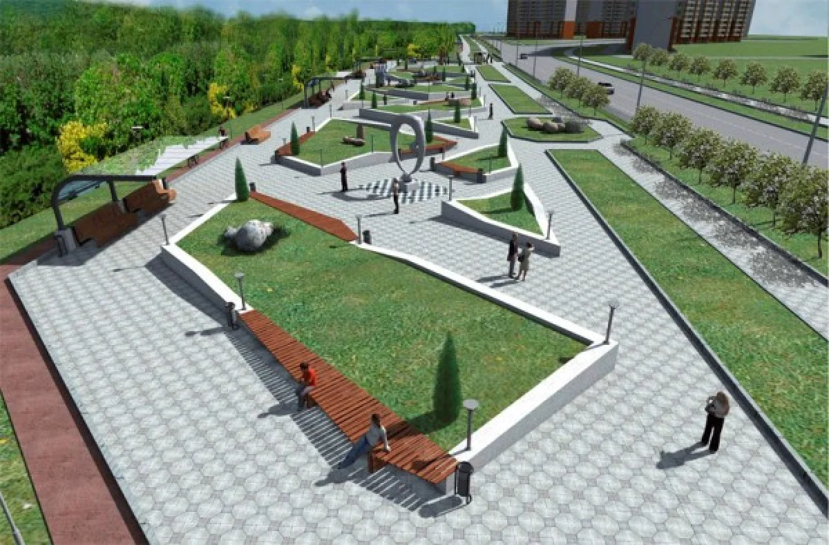 На бульваре предусмотрены аллеи, дорожки, площадки, живая изгородь из кустарников, газоны и цветники. А на площадке для отдыха установят скамьи, светильники, навесы, урны для мусора.