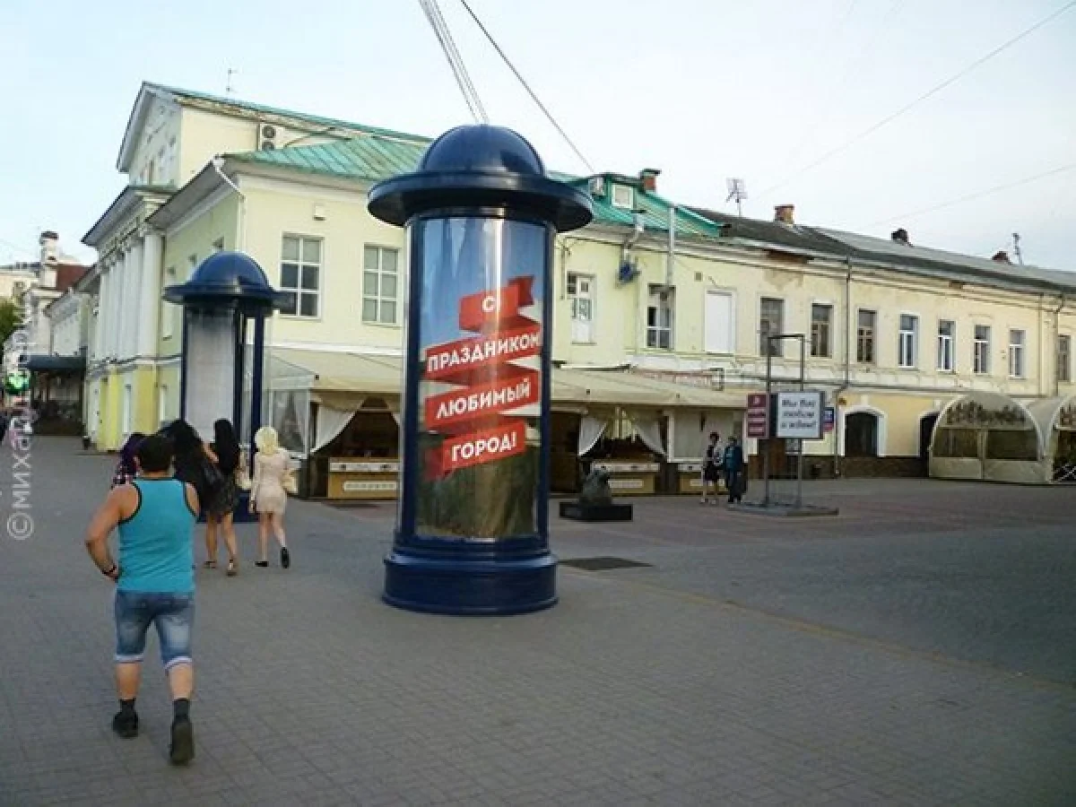 Появление здесь рекламных «ракет» оказалось неприятным сюрпризом и для руководства Управления архитектуры и градостроительства. Тем более что незадолго до этого главный архитектор попросил убрать с Театральной тумбу областного драматического театра, которая, по мнению Евгения Голышева, нарушала гармонию улицы.