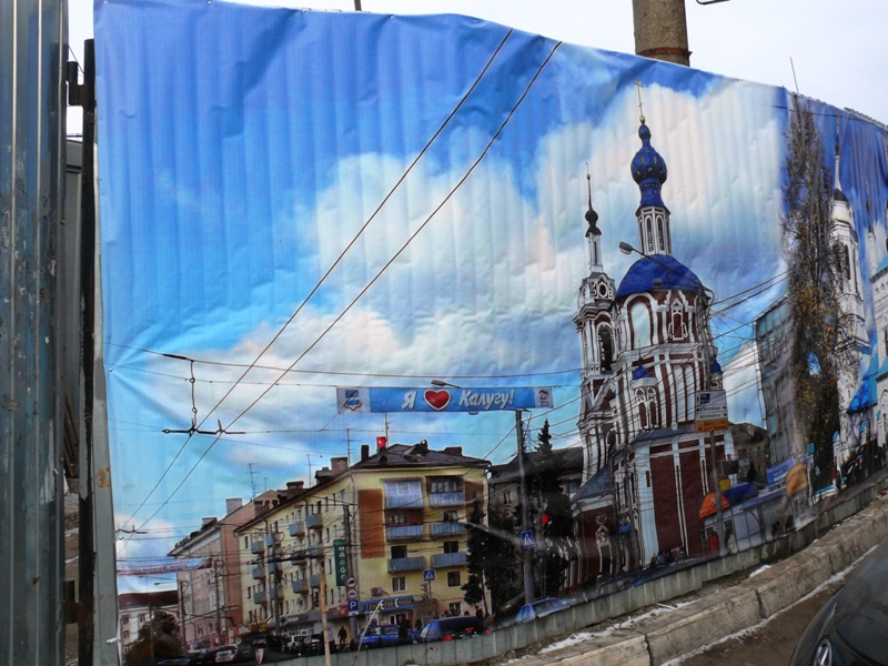 На днях забор рынка со стороны улицы Марата в Калуге завесили огромным баннером.