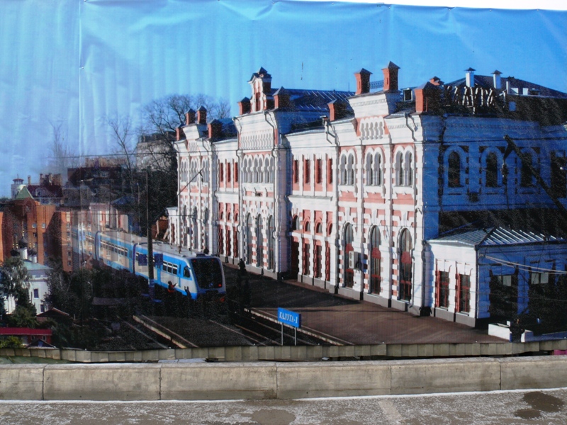 Фото на заборе рынка в Калуге. Правый берег реки Вологды, Церковь Святого Благоверного Князя Александра Невского.