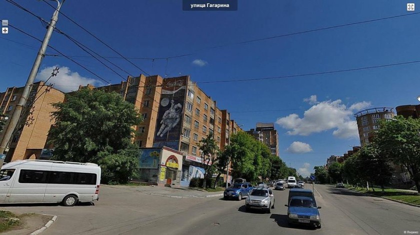 В июле стену дома № 11 по улице Гагарина в Калуге, стоящего на въезде в город, украсит баннер с принтом на космическую тематику. Это будет изображение либо Юрия Гагарина в шлеме, либо космонавта со связкой шариков-«планет», либо Константина Циолковского, рассекающего на велосипеде по космическому пространству.