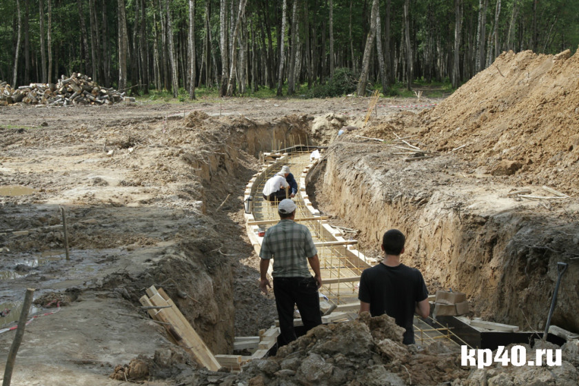 В самом центре вырыта мощная траншея, в которой смонтирован арматурный каркас будущего фундамента. На этой неделе планируется закончить его заливку, чтобы затем приступить к кирпичной кладке.
