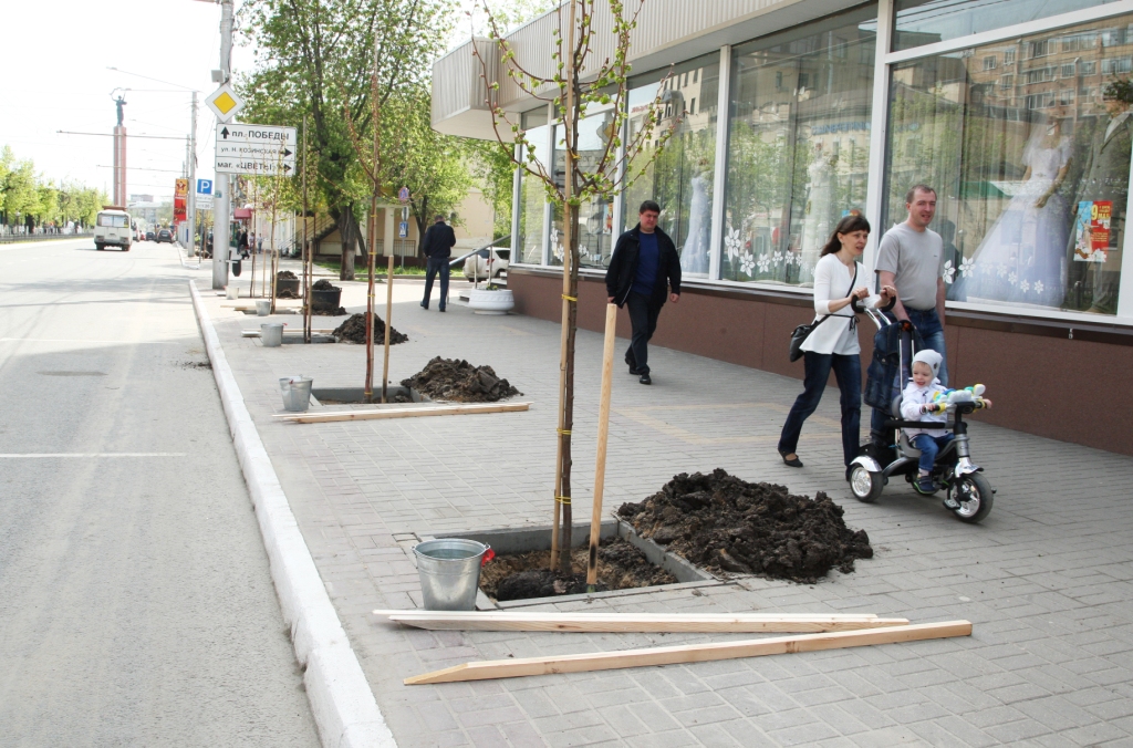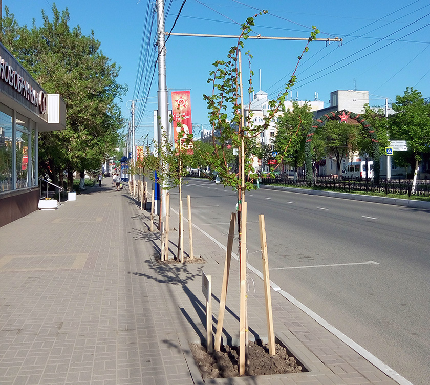 Накануне Дня Победы в Калуге на улице Кирова высадили 85 саженцев лип. Деревья будут расти на участке от площади Победы до улицы Ленина.