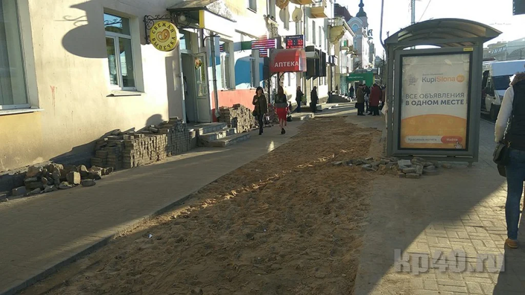 Как мы уже рассказывали, у дома №11 по улице Кирова рядом с остановкой общественного транспорта ещё в начале октября начались работы по ремонту участка теплосети. Вернуть тротуару изначальный облик в «Калугатеплосети» обещали ещё к 13 октября. Однако работы не завершены до сих пор.