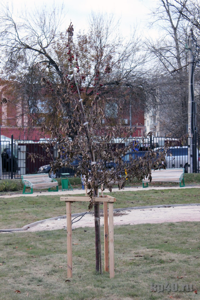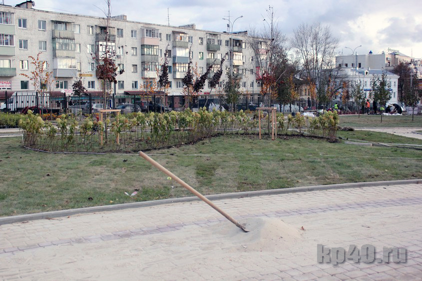 17 октября здесь прошла очередная массовая посадка деревьев. Как нам рассказали в управлении капитального строительства Калуги, подрядчик вполне справляется сам, однако в очередной раз свои садоводческие навыки демонстрировали горожане. Были высажены 15 лип и около 200 кустов шиповника.