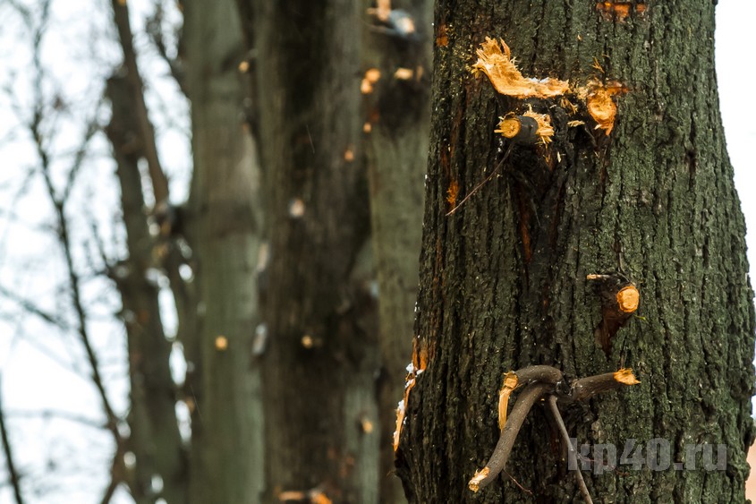 С Зариной трудно не согласиться. Причина обрезки деревьев, над которыми не проходят провода, непонятна. А выглядят они сейчас так, будто кто-то вдоволь над ними надругался, натешился: ветви вырваны «с мясом», кора повреждена во многих местах.