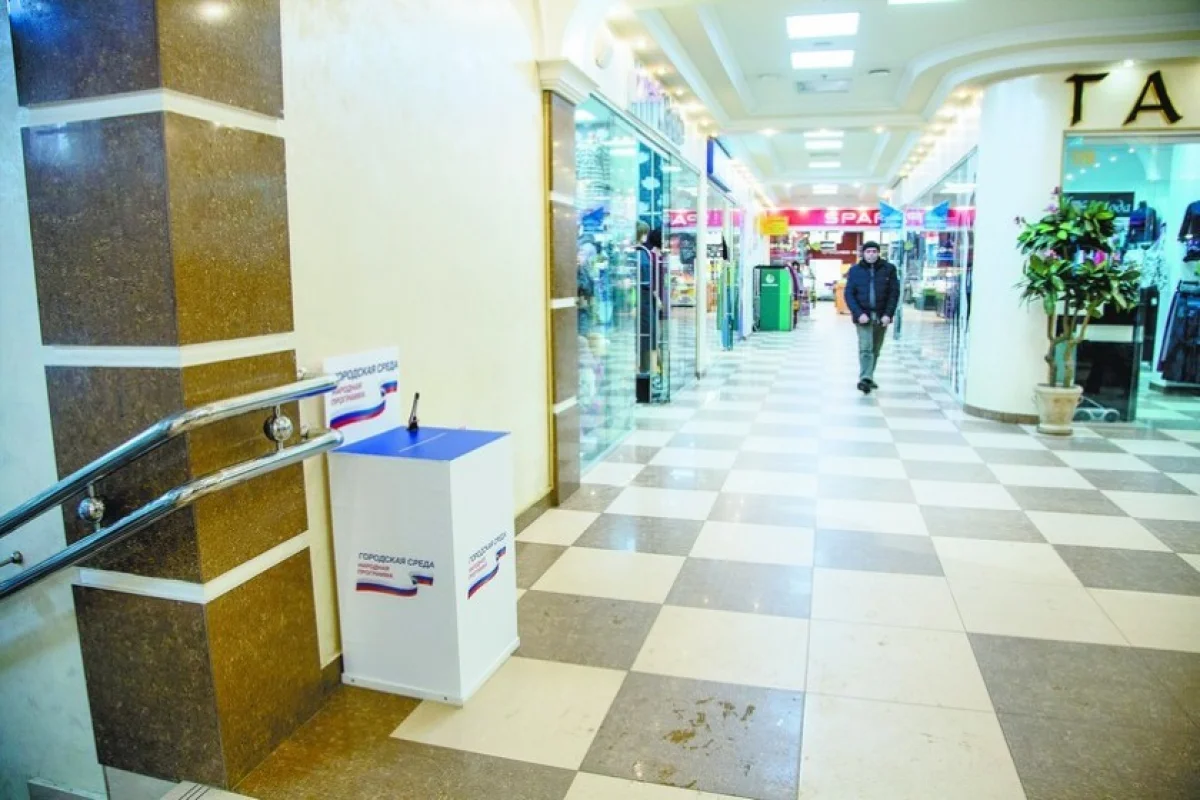 Торговый комплекс в центре Калуги. В холле на первом этаже — недалеко от входа — установлена небольших размеров прямоугольная урна — если специально не искать, то сразу и не заметишь. На ящике надпись: «Городская среда. Народная программа». Кроме ручки, приклеенной к урне, на ней больше ничего нет: абсолютно никакой информации о том, что это за программа и зачем здесь стоит этот ящик.