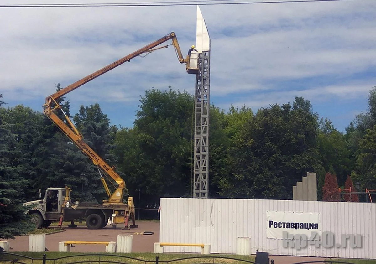 Сейчас проходят работы по восстановлению бетонной плиты, гидроизоляции фундамента, установка новых опор, замена облицовки и реставрация орденов.