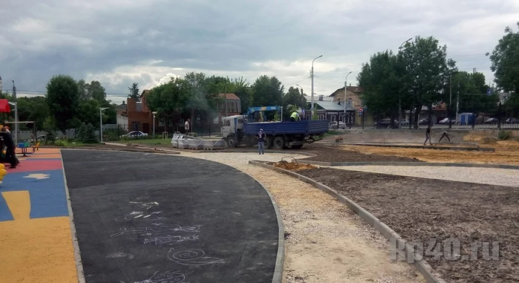 В новом калужском парке на месте бывшего рынка продолжаются работы по благоустройству той части, где в прошлом году снесли два частных дома.
