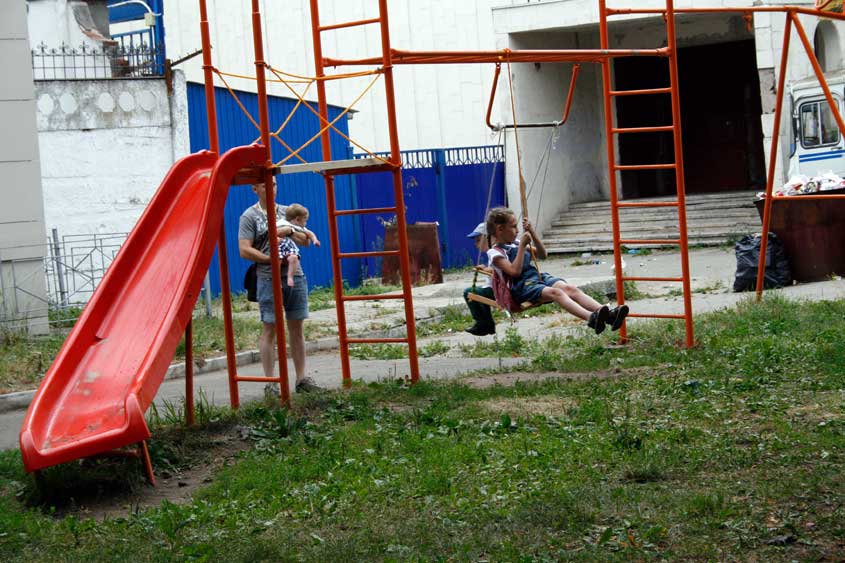 Сразу после того, как активисты покрасили площадку, в сквере стали появляться дети.