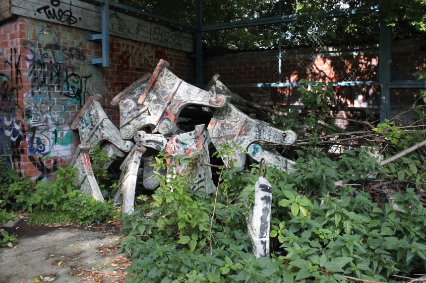 Подлезаю под сигнальную красно-белую ленту с надписью: «Осторожно! Возможно падение лепнины», — которой опоясан Дворец пионеров. Прохожу несколько метров вдоль глухой бетонной стены, ныряю в густые заросли — и вот он, проход, который мне нужен. Захожу и попадаю на… кладбище скамеек. Многие калужане наверняка помнят эти старые массивные деревянные лавки со спинками, которые стояли в городском парке до его реконструкции в 2010 году. Вместо них установили новые, а прежние отправили сюда. Когда-то, в более благополучные времена, это был учебный корт № 4: здесь теннисисты тренировали удары о стенку.