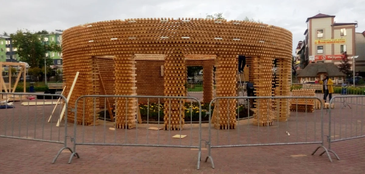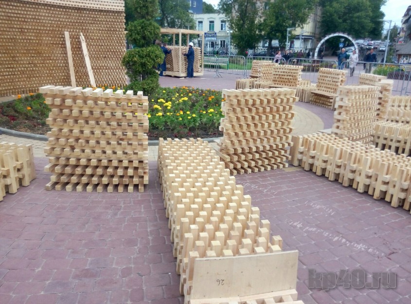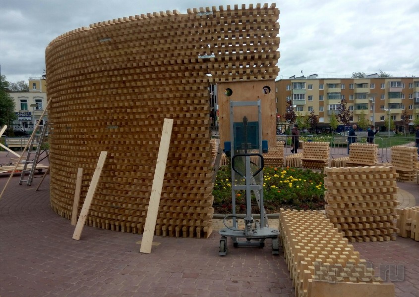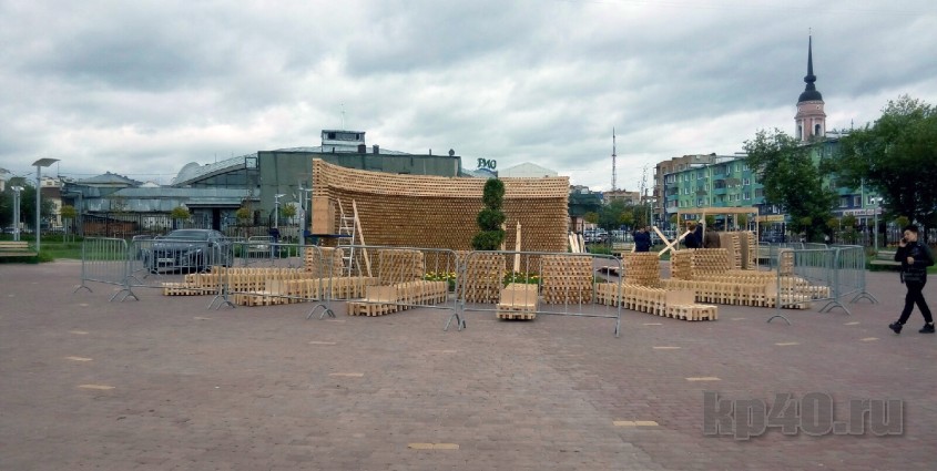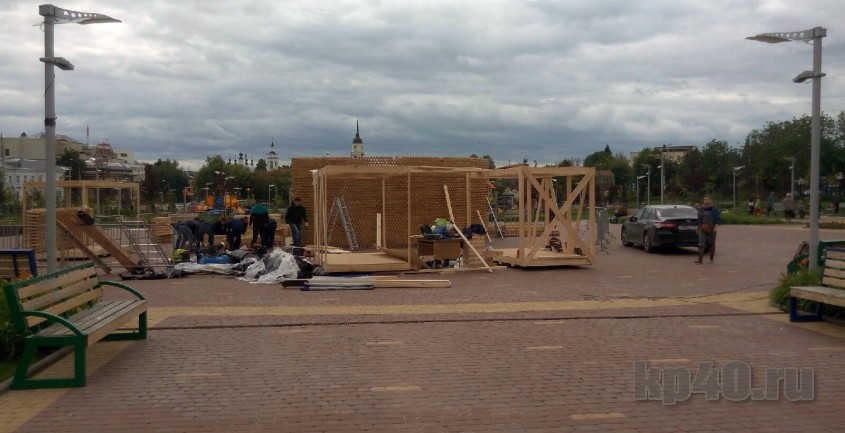 Утром в пятницу, 9 августа, в парке на месте рынка в Калуге начали устанавливать деревянную ротонду. Она расположится вокруг клумбы в центральной части сквера.