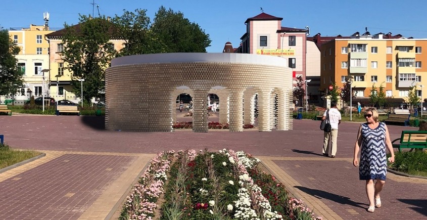 В скверопарке установили ротонду – прямо вокруг клумбы
