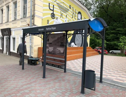 Как мы рассказывали, в пятницу, 5 июня, на улице Ленина в Калуге, в районе сквера возле горуправы, установили новый остановочный павильон, выполненный в так называемом губернском стиле.