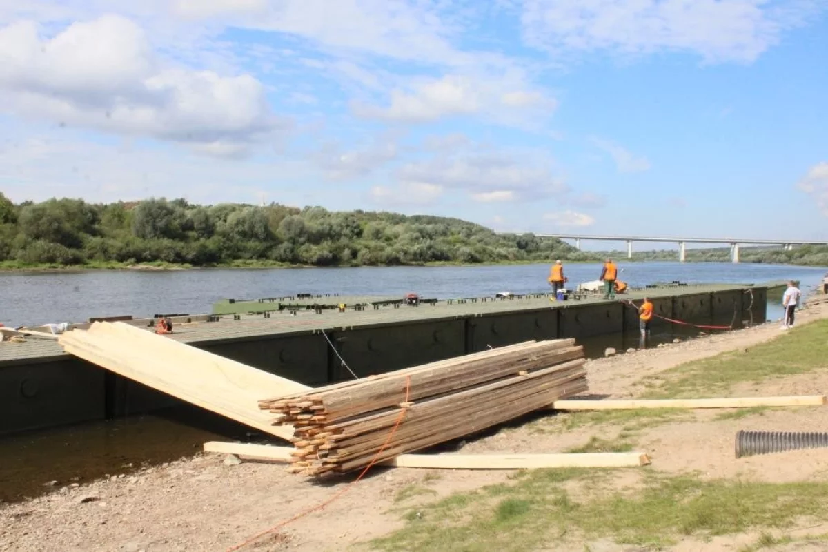 В Калуге собрали часть понтонного моста