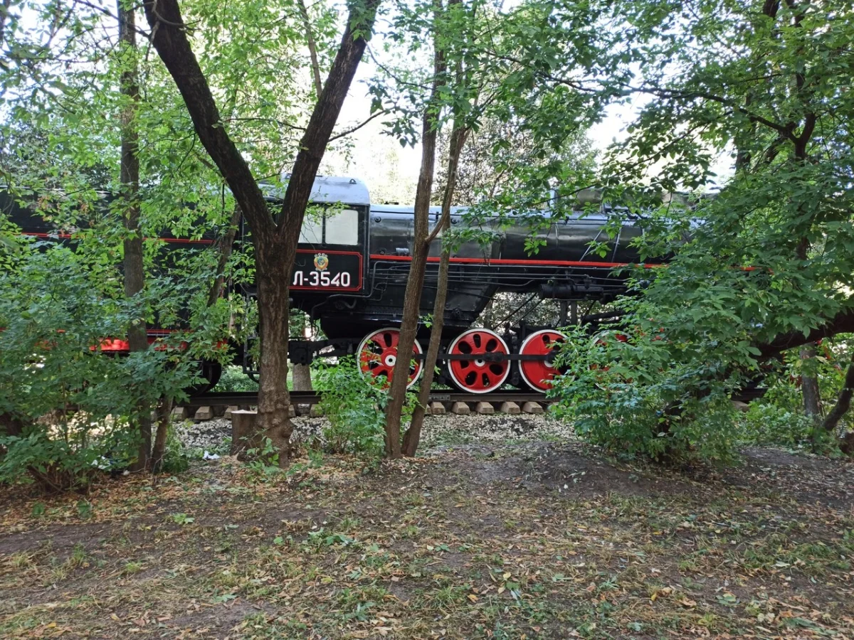 Паровозик притаился в кустах: со стороны новый памятник разглядеть сложно