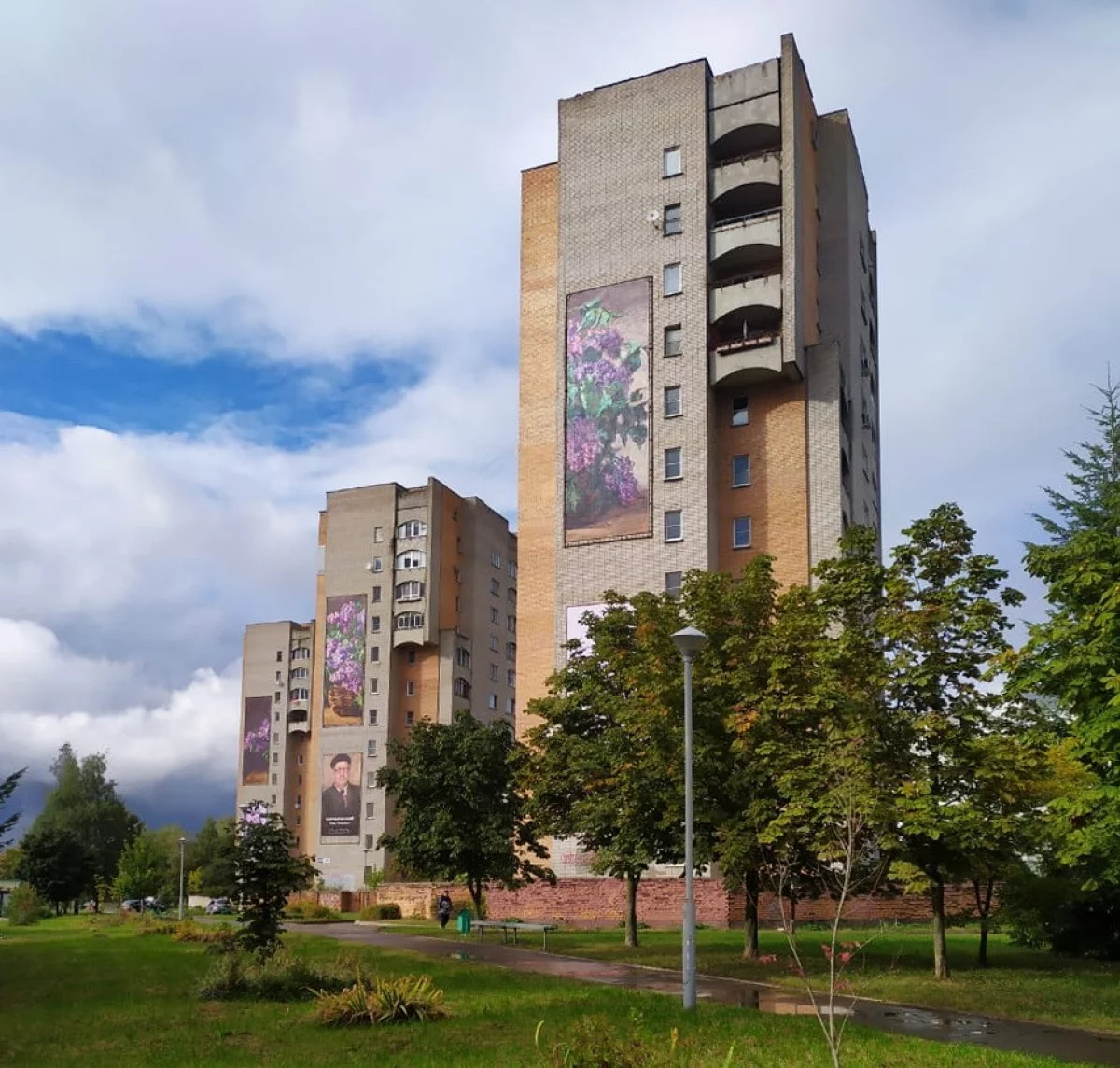 В Обнинске фасады домов на проспекте Ленина решили украсить картиной Петра Кончаловского «Сирень в корзине». Репродукцию разделили на три части и перенесли на дома 130, 132 и 134.