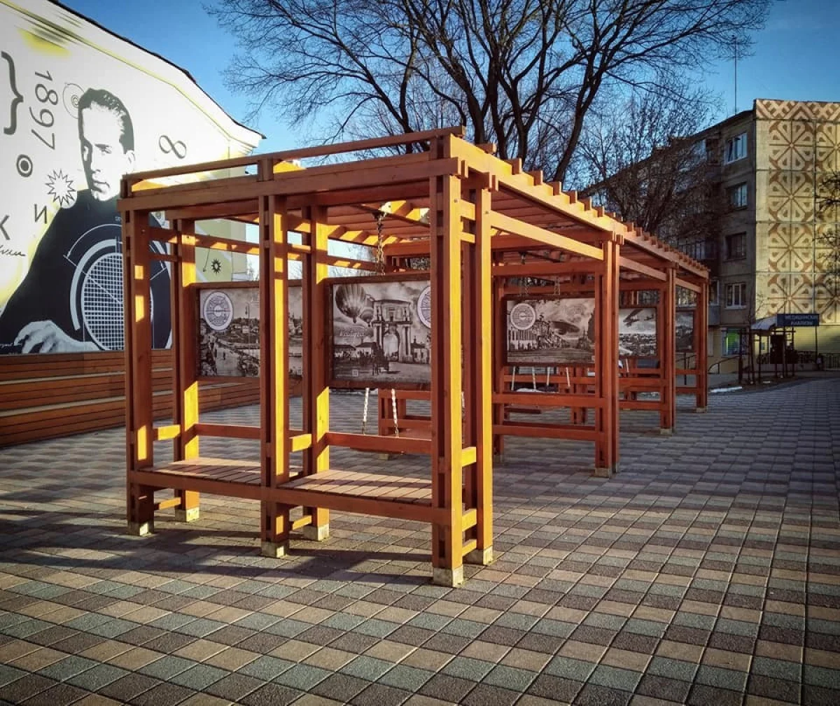В Калуге расшатались качели в сквере на улице Ленина, которые установили возле городской управы год назад. Чтобы укрепить конструкцию, между столбиками закрепили деревянные щиты. А в пятницу, 11 декабря, их превратили в выставочную площадку.