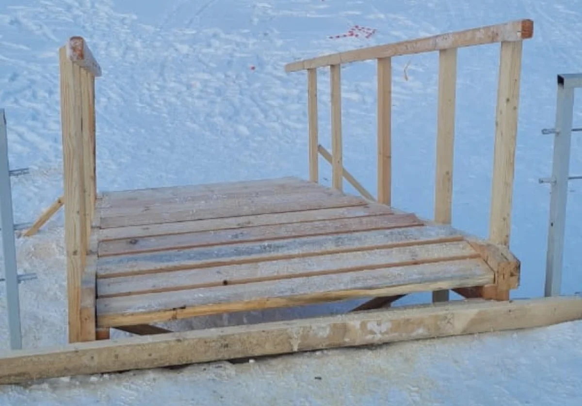 Лестница находится в районе вертолетной площадки. Она нужна рыбакам лыжникам и всем остальным, кто хочет прогуляться по льду в морозную погоду.