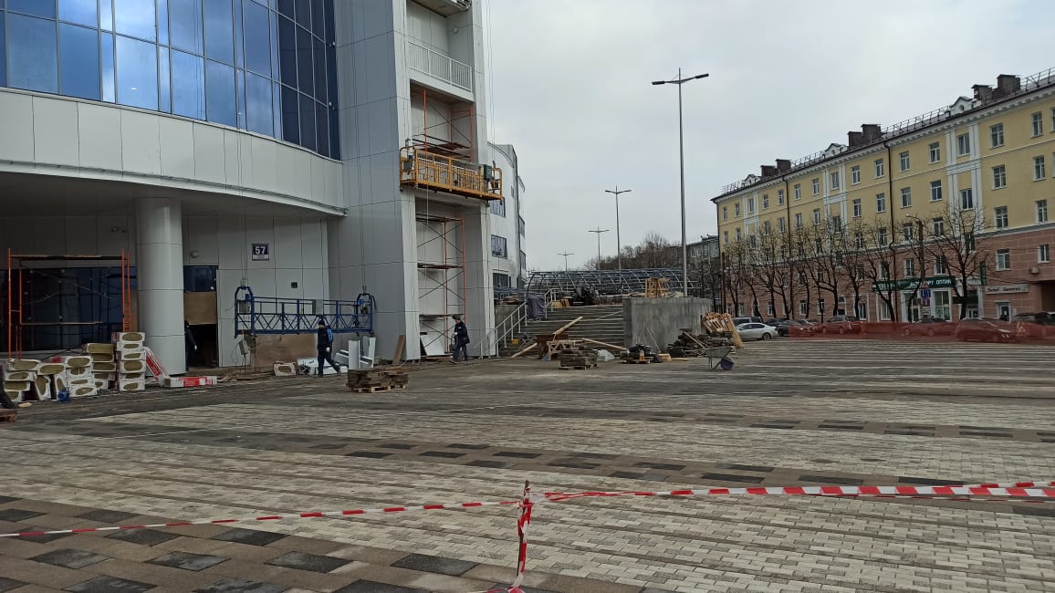 В четверг, 1 апреля, в Калуге демонтировали часть временного ограждения Дворца спорта со стороны улиц Ленина и Баррикад.